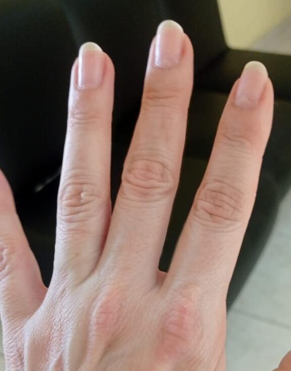 O resultado foi transformador. Com dedicação ao plano, as lesões desapareceram, as unhas se fortaleceram e — o que mais emocionou — o cabelo voltou a crescer cheio, forte e saudável. Mais do que fios novos, voltou a confiança no espelho. Um sinal vivo de que, quando entendemos a causa, a vida começa a florescer de novo.